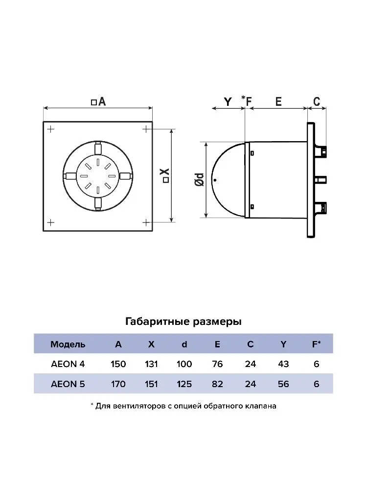 - Вентилятор 100 ERA AEON 4C накладной D100 обр.клапан